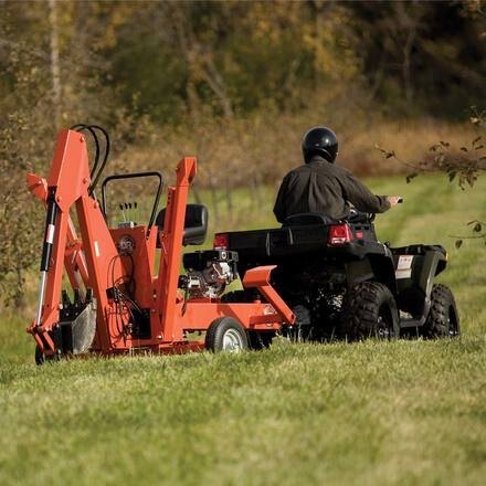 Dig trenches, plant trees, take on landscaping projects, and more with our DR Towable Backhoe. The hydraulic power system is self-contained for use anywhere, on your toughest jobs. For use with ATV or UTV.
