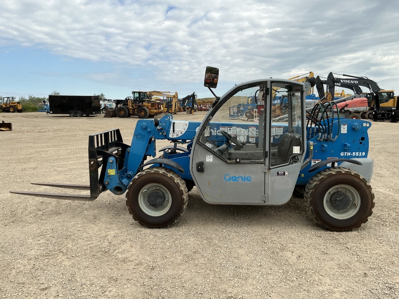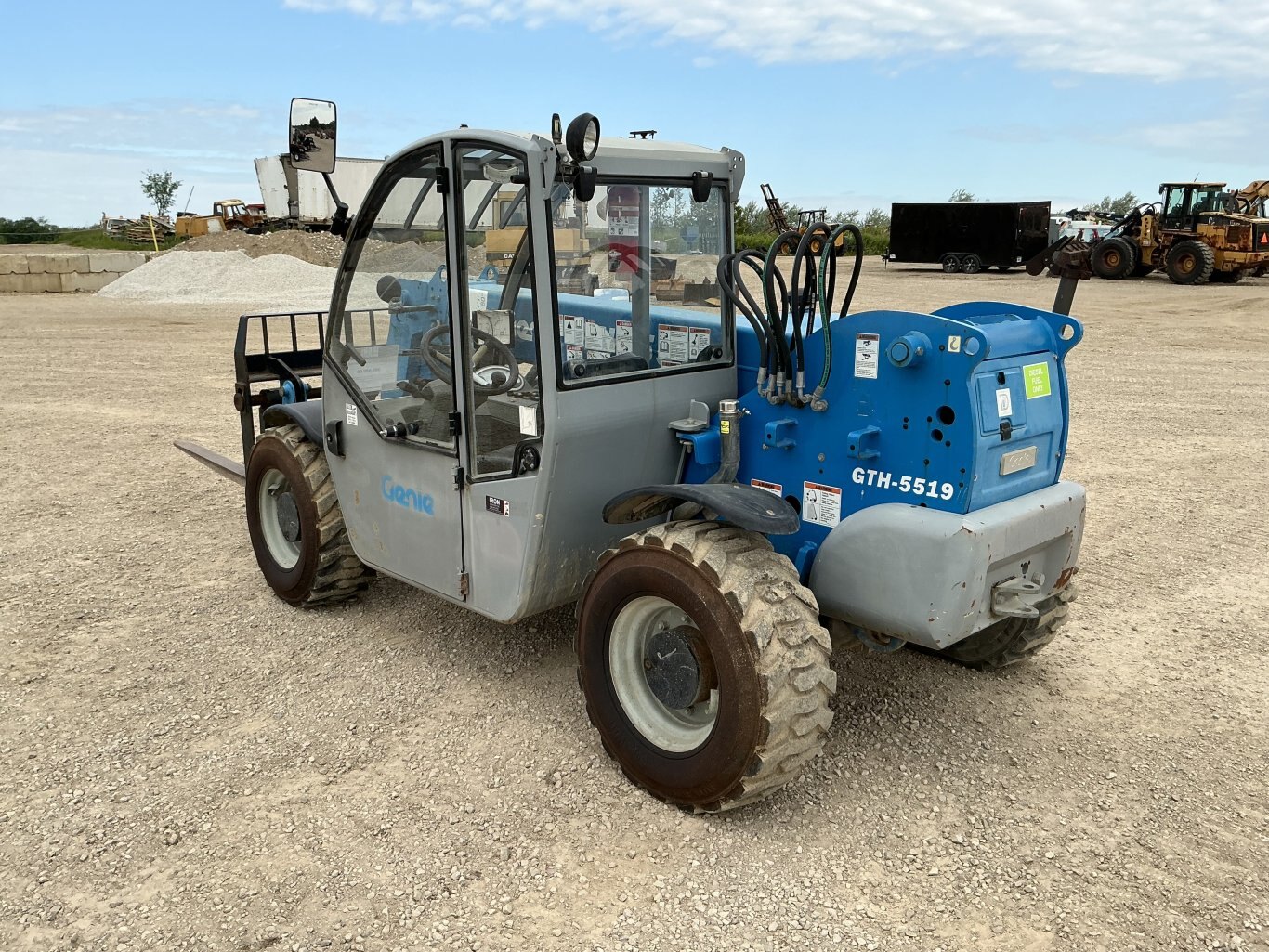 2013 Genie GTH 5519 zoom boom powered by Duetz diesel engine. Enclosed heated cab with glass intact. Manual quick connect and auxulairy hydraulics. Max height of 19’ and max forward reach of 11’. Max lift of 5500lbs. Machine weights about 10400lbs. Hour meter reads 1973. Located in Maxwell Ontario.