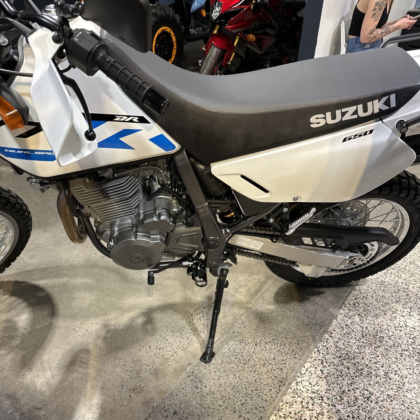 Finance Rates Starting As Low As 5.99% OAC WHEREVER YOUR ROAD LEADSImagine having a blast down your favourite back road in your Suzuki DR650SE. You’re looking ahead and see the end of the paved road – there’s no need to stop. Continue your breathtaking journey as the DR650SE will go the extra mile. The bike has exceptional handling with technically advanced front forks and a smooth powerband to accelerate through the corners. Powered by a 644cc four-stroke engine, the DR650SE is your ticket to an adventure of a lifetime. Light and maneuverable, the DR650SE adds meaning to dual sport motorcycling with freedom and exhilaration. Powerful performance on the street and over trails results from an ideal power-to-weight ratio, front forks with a progressive action, a range of high-quality features and tough design. Discover the dual sport the way it was meant to be. The DR650SE will take you there. Looking for a Dual Sport Bike with long-travel suspension while at the same time having the ease of reaching the ground when coming to a stop? With the optional Genuine Suzuki Suspension Lowering Kit you now have all the riding flexibility of a true dual sport bike while having the convenience of a comfortable riding position. Ask your authorized Suzuki dealer for more details. |