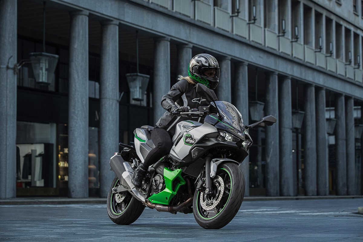 | The world's first* strong hybrid** motorcycle offers riders a number of new riding experiences: a mid-size package with the instant acceleration of a 1,000cc-class supersport model from a standing start (with e-boost), fuel economy on par with the 250cc-class, and button-shift sport riding. With three different drive modes each offering a distinct riding character and numerous innovative features for riders to explore, the Ninja 7 Hybrid truly changes the game, ushering in a new era in riding experience.* Mass production models (excluding scooters) from a major power sports manufacturer as of October 6, 2023, per Kawasaki Motors, Ltd. research. |
