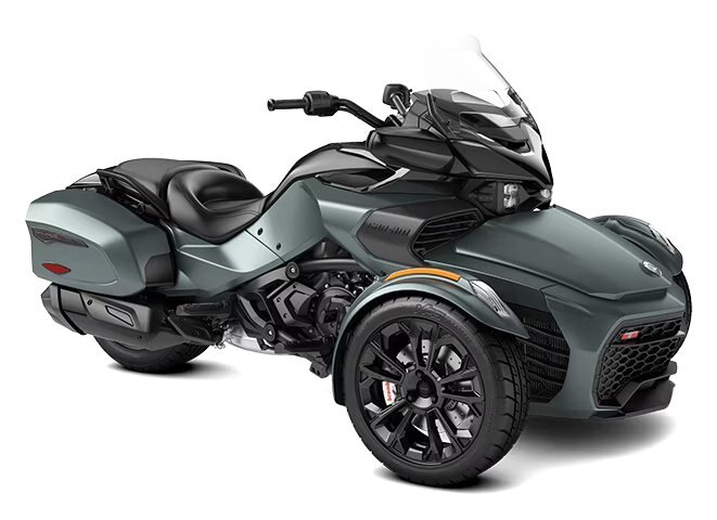 | Go the extra mile with the Spyder F3-T. Enjoy the road with the built-in infotainment system, added comfort of a windshield along with a smooth and quiet ride. You can also take along your gear with integrated hard side luggage. |