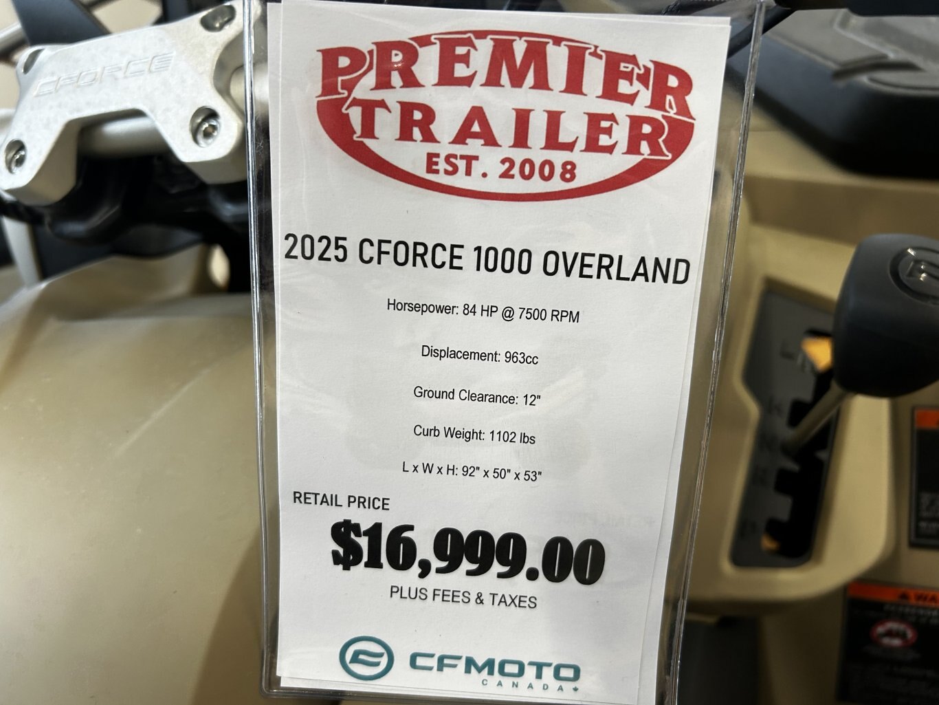 Sale happening right now on almost all CFMoto products at Premier Trailer! Promotion ends January 31st, 2026 2025 CFMoto CForce 1000 Overland