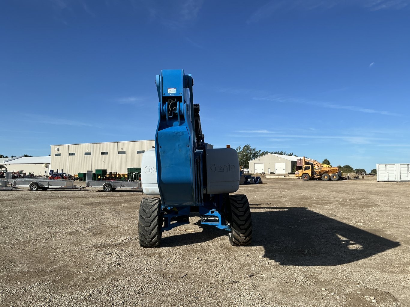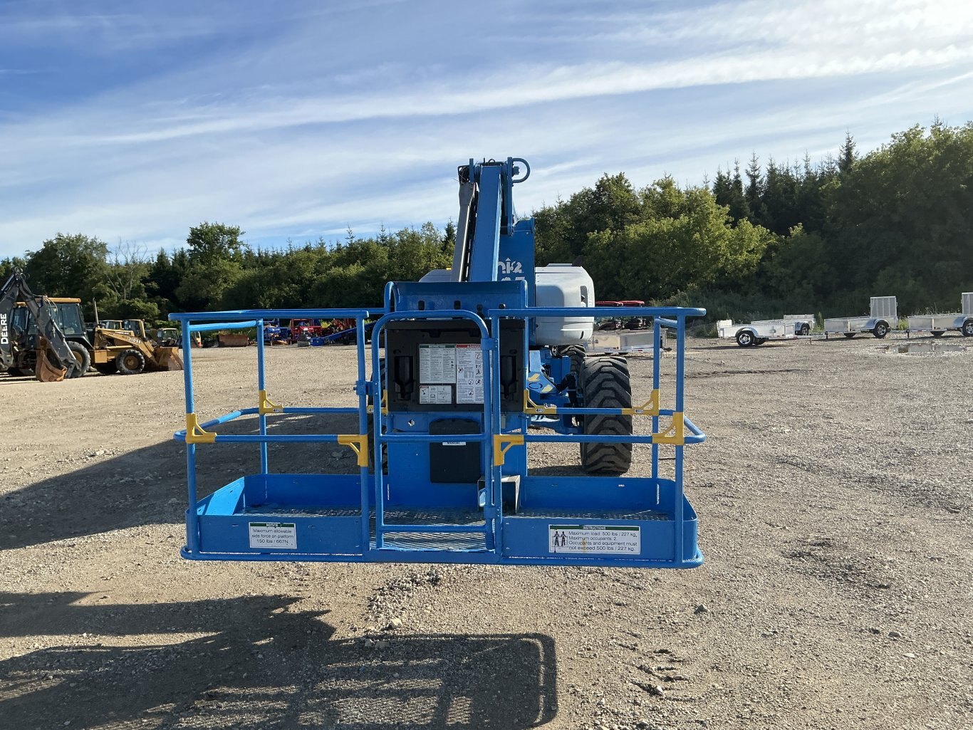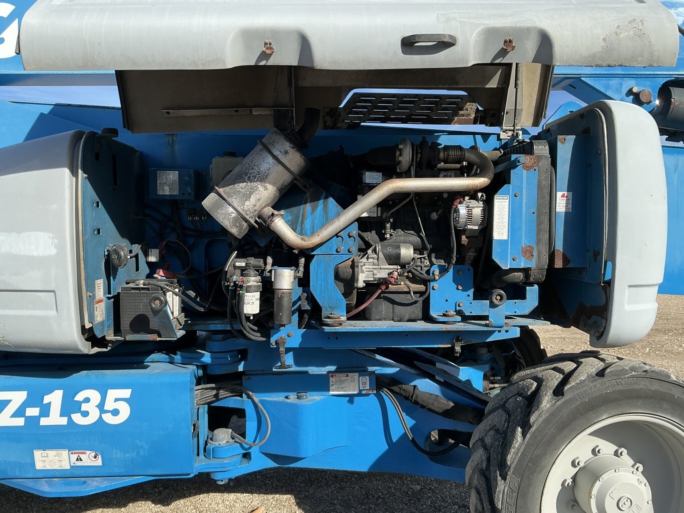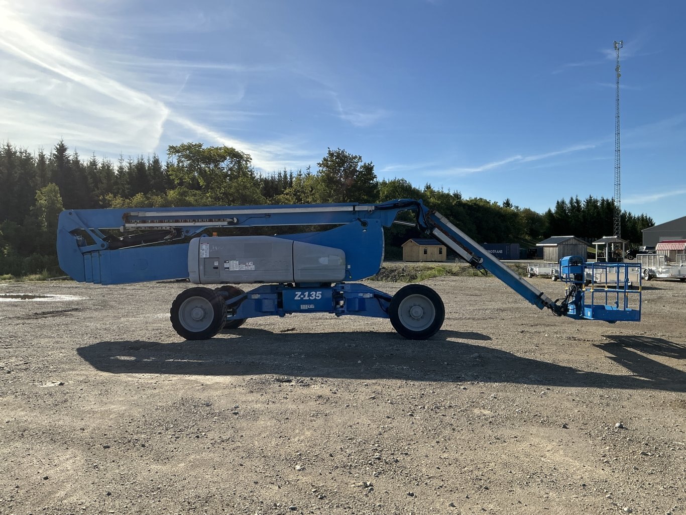 Articulating man lift, 2012 Genie model Z135/80. This boom lift has a platform height of 135 feet giving 141 feet working height and 69 feet outreach. 4WD driveline and powered by a Perkins diesel engine. Machine weighs around 45000 lbs. Hour meter shows 4004