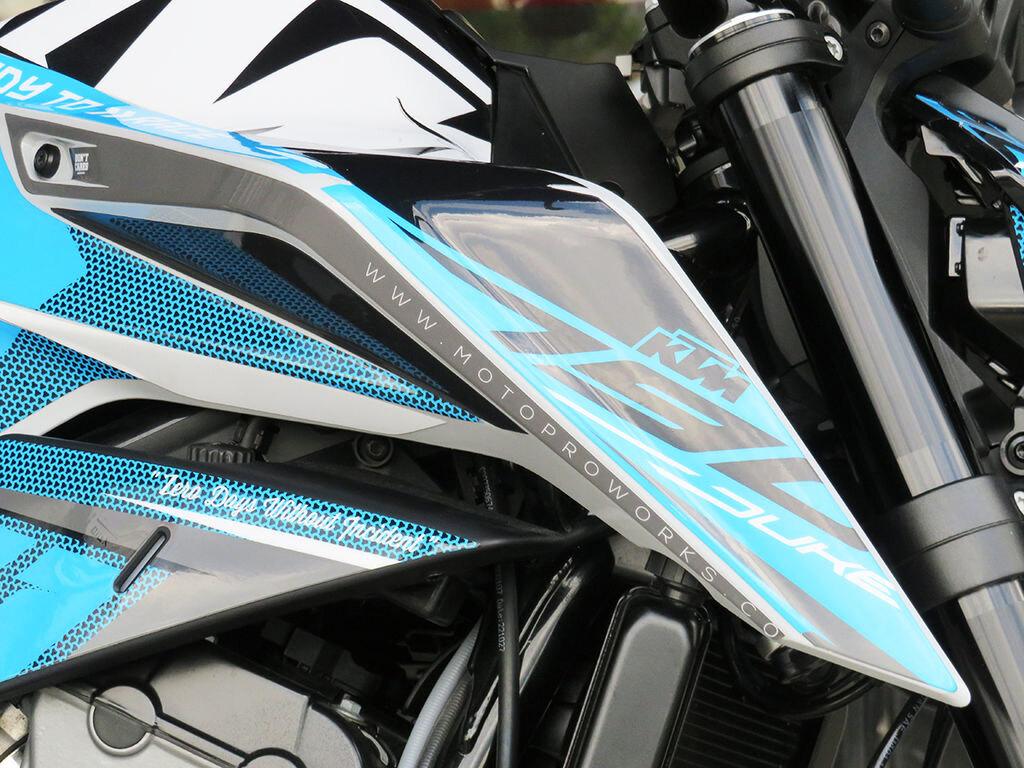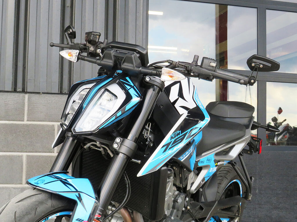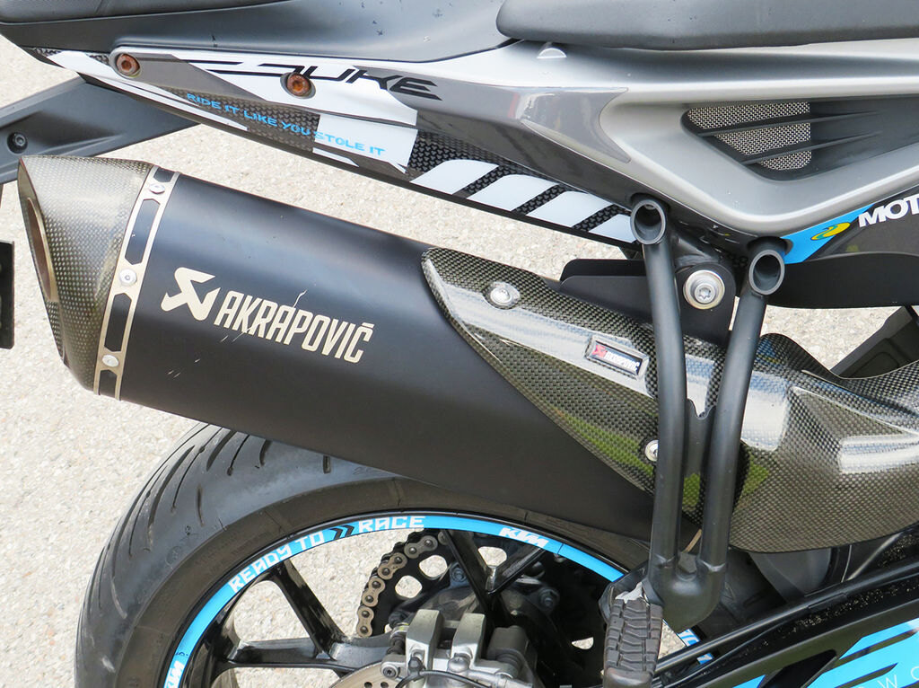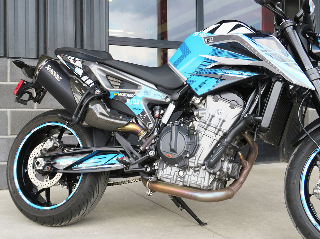 The wonderful 790 Duke turning heads with a full Akrapovic exhaust and a blue decal kit. Rounding out the look is some bar-end mirrors and this potent middleweight is going to be an exciting addition to your riding repertoire!