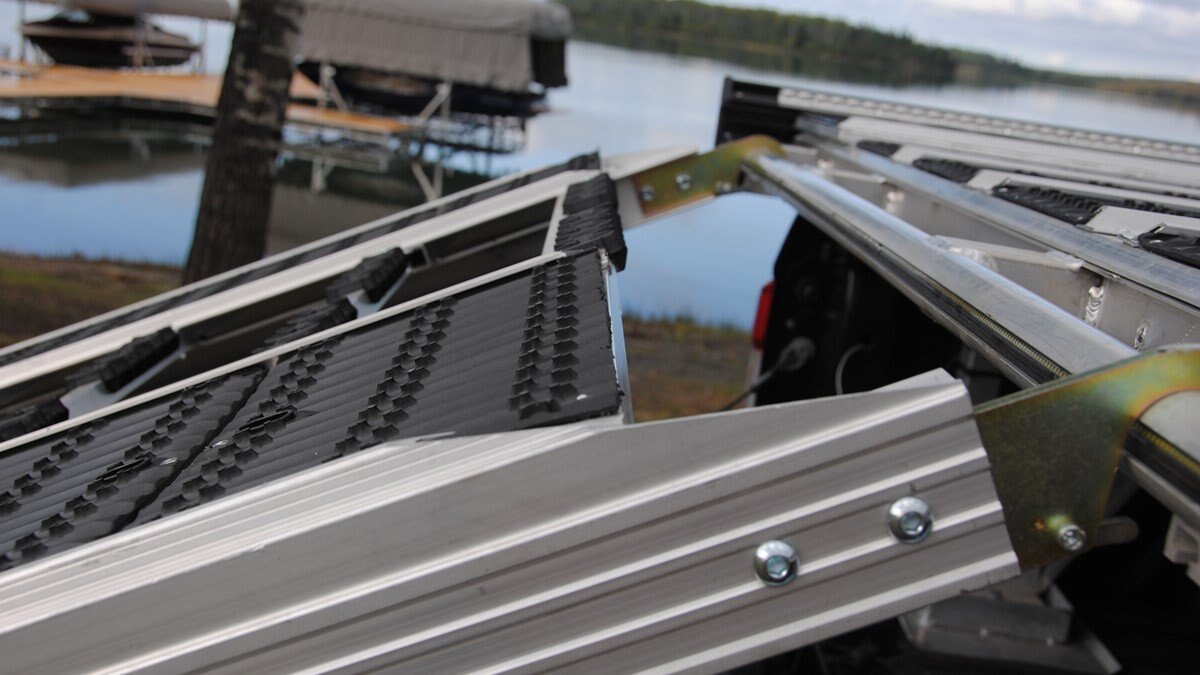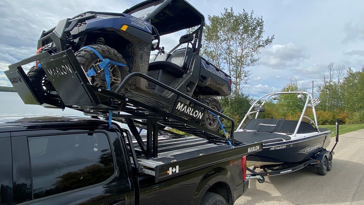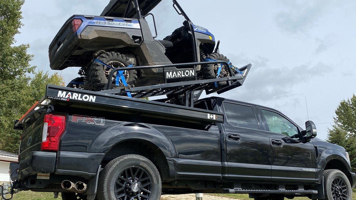8' Xplore Truck Deck - PRO models come with all the features, aluminum decking, superglides, superglide extrusions mounted on the deck for loading on the sides or down the middle and two rear superclamps. Same solid infrastructure that we have built our decks on for over 15 years with a new side extrusion. Our side extrusion encloses all wiring for the bullet LED lights and offers an easy grip profile at the bottom to extend or pull your sides out. Side extrusion also holds Supertrac at a 45 degree angle with 4 tie downs. This offers multiple tie down locations completely down the side of your Marlon Xplore deck. Superglides are also held in place at the outer sides of the deck as we have incorporated the superglide profile into our side extrusion to save room on the decks. LED bullet lights are strategically placed in the head ache rack and under the deck with a heavy-duty toggle switch for lighting things up early in the morning and later in the day. Legs are adjustable to fit a long box or short box. Plug in wiring harness allows you to plug your deck into your trailer lights. Check out all of the related accessories below and then go Xplore like a PRO! Sled decks are offered in Sled or ATV versions: ATV version does not come w/ superclamps. |