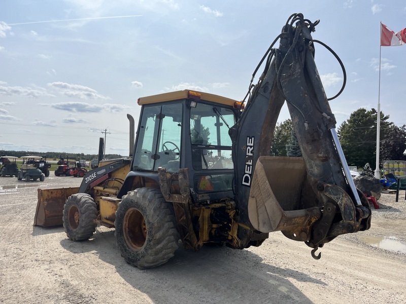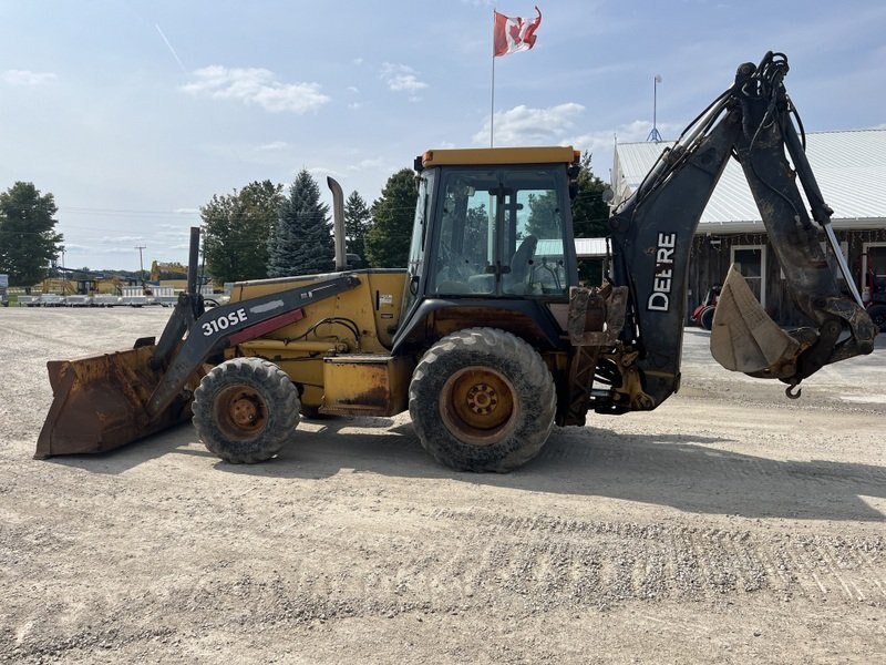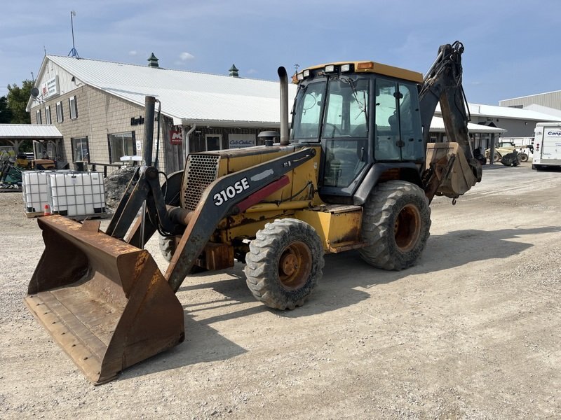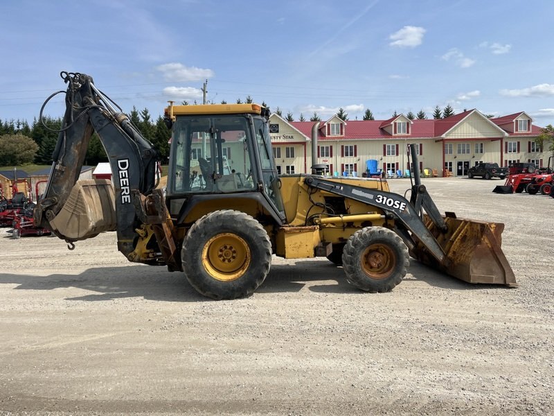 1999 John Deere 310SE is powered by a 88hp John Deere diesel engine. Enclosed heated cab with all glass intact 4 wheel drive with 4 speed transmission. Unit is extendahoe with 2 stick controls. . Machine is equipped with manual pin grabber. Operating weight is about 15,900lbs. Hours meter not working.