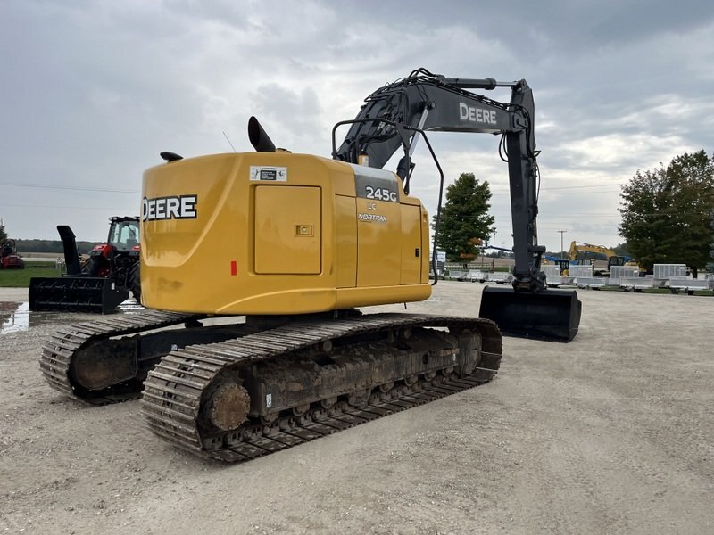 2018 John Deere 245G LC is powered by a 159hp Isuzu diesel engine. Unit is equipped with hydraulic pin grab coupler and auxiliary hydraulic. Two speed driveline. Enclosed heated cab equipped with A/C Unit weights about 56000lbs. Hour meter reads 3234.