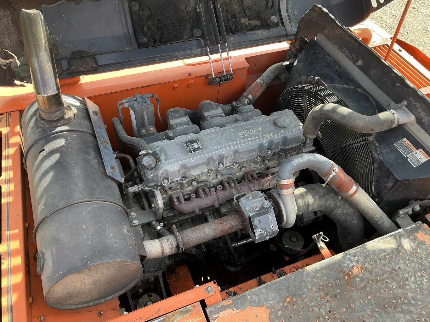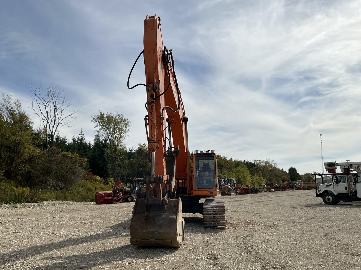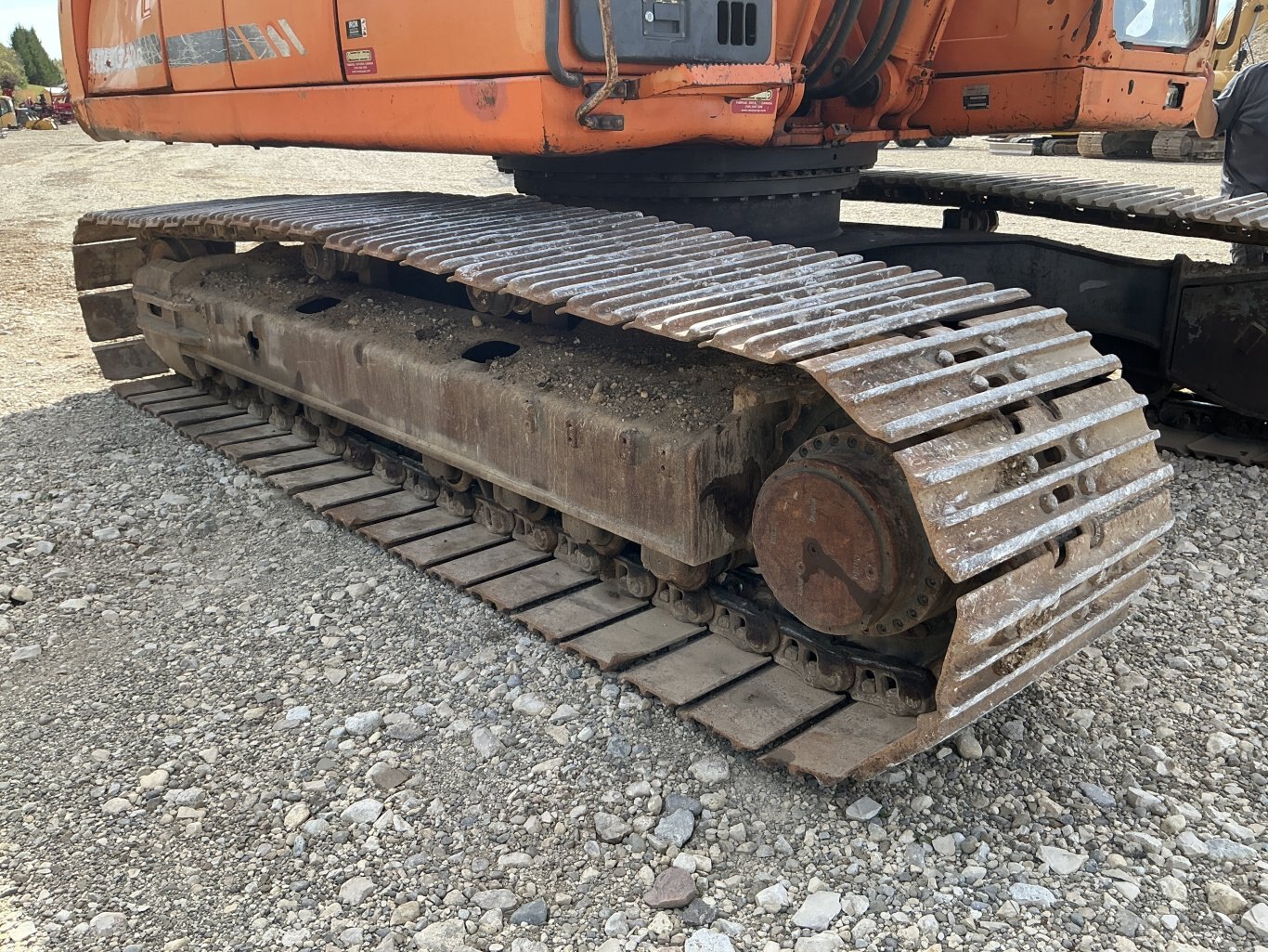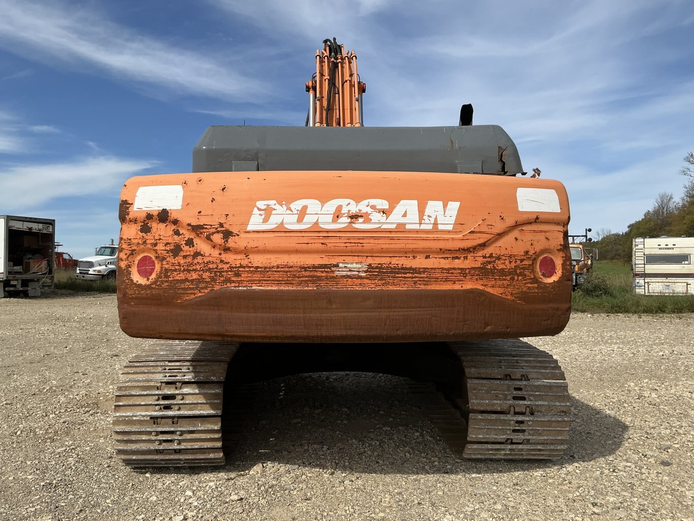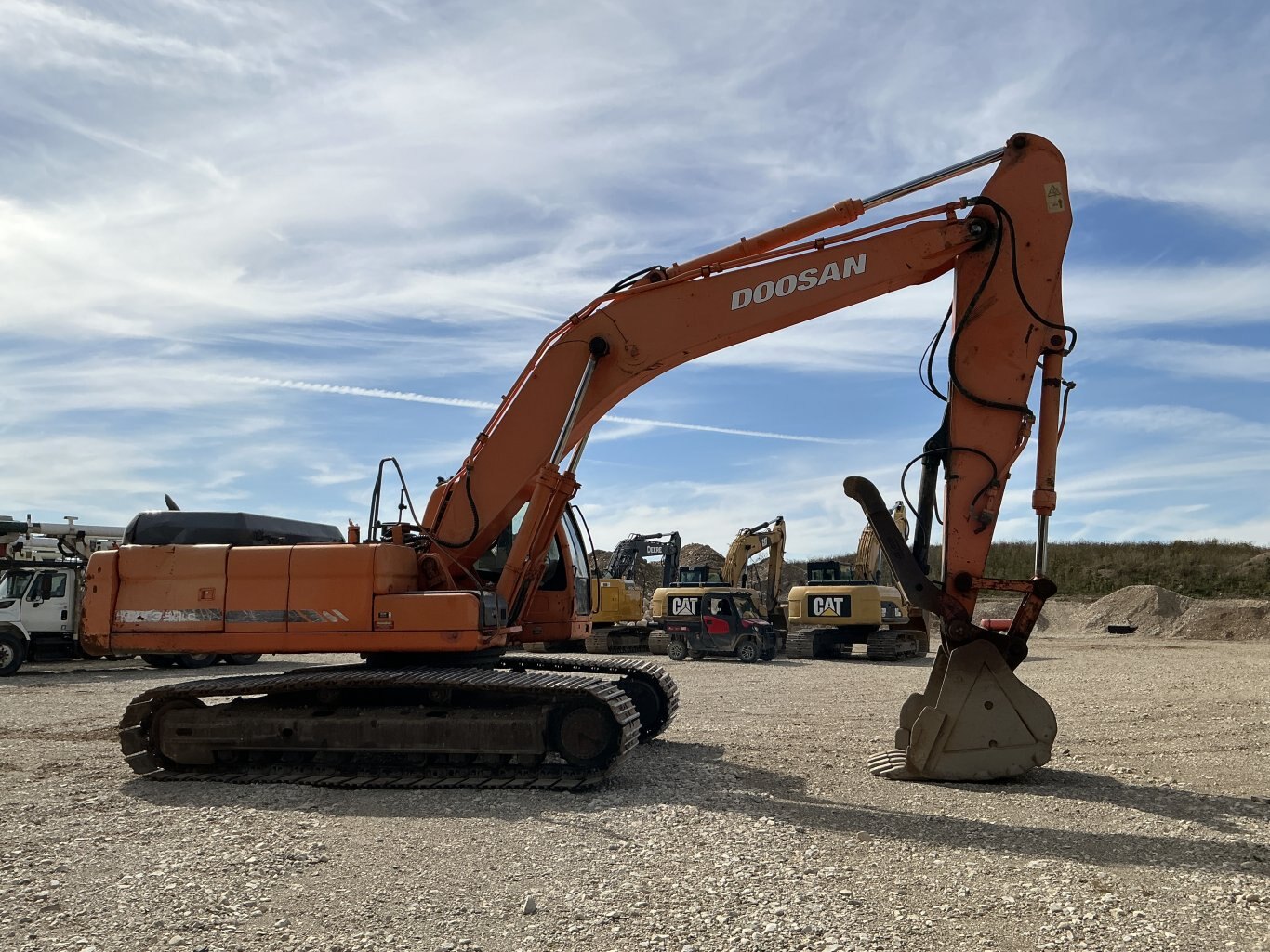 2011 Doosan DX350LC is powered 281hp Doosan diesel engine. Machine weighs about 78,000lbs. Enclosed cab with all glass intact. Unit is equipped with hydraulic thumb and auxiliary plumbing. Comes with one tooth bucket. Hours unkown.