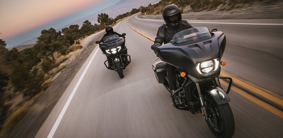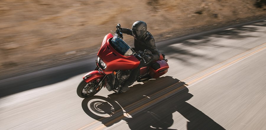 Features a fork-mounted fairing and a PowerPlus liquid-cooled engine.