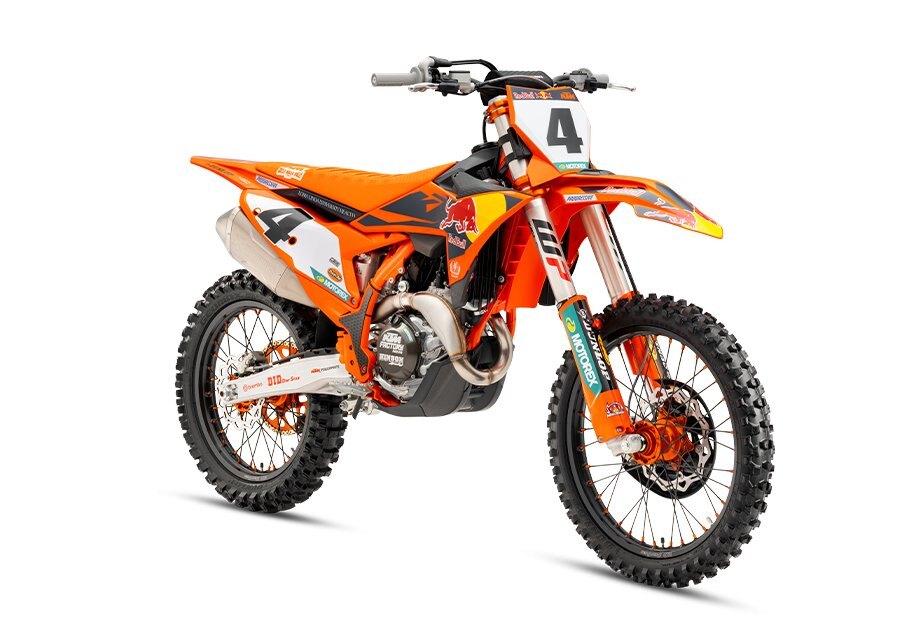 KTM lives and breathes a READY TO RACE mantra, and the FACTORY EDITIONS are special, limited-run models that erase the last few spec variances between what is 'stock' and what is 'factory'. It's then up to the rider how much they want to make the difference: how fast are you and how much do you want it? The KTM 450 SX-F FACTORY EDITION inherits the basis of the 2025 peerless KTM SX-F motocross racers and then, thanks to a list of KTM POWERPARTS additions, gets as close to the Pros as its possible to be. This specific bike comes with an innovative Connectivity Unit that allows more interaction and setup possibilities than ever before. The KTM 450 SX-F FACTORY EDITION has been crafted by racers for the ultimate racecraft. Try to catch it.