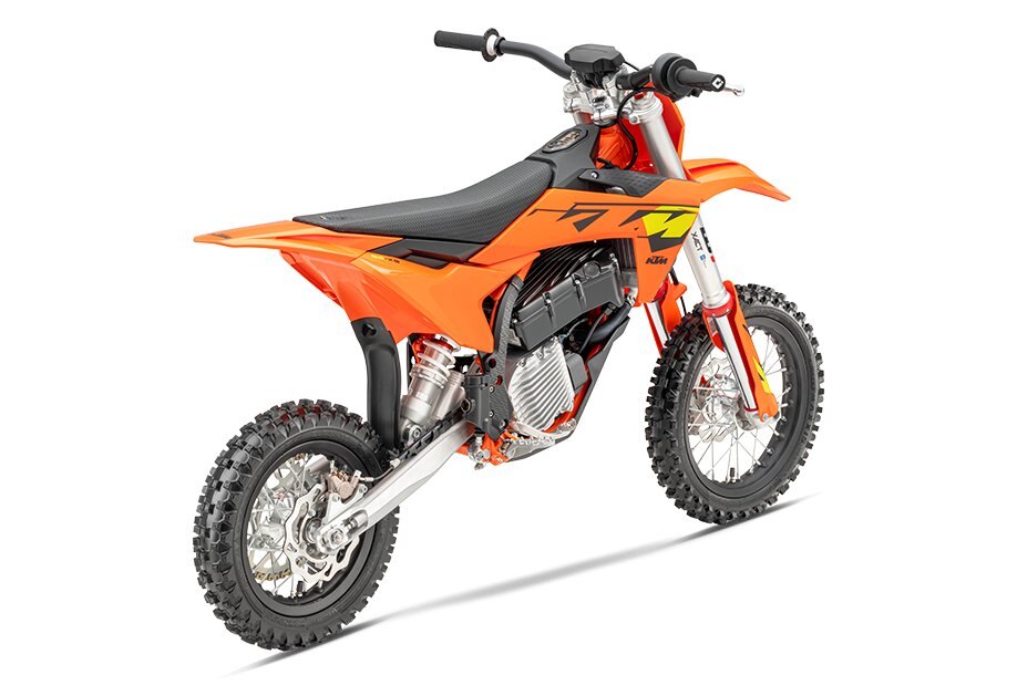 The KTM SX-E 5 represents a new generation of advanced all-electric mini-cross that will entice and empower the next generation of KTM motorcyclist. Aimed at both beginner and competitive junior racers and with benchmark adjustable ergonomics - allowing the bike to 'grow' with the user - the KTM SX-E 5 is a high-quality and prime real-world READY TO RACE alternative to the gas-powered 50 cc engine. The KTM SX-E 5 is not a toy: this is a bona fide platform for juniors that are finding all the joys of having a throttle in their right hand without the complications of emissions, complex maintenance, and noise. Whether riding, practicing or racing, the fresh KTM SX-E 5 is both everything they ever wanted and everything they'll ever need. This motorcycle is designed, developed, and produced in Austria.