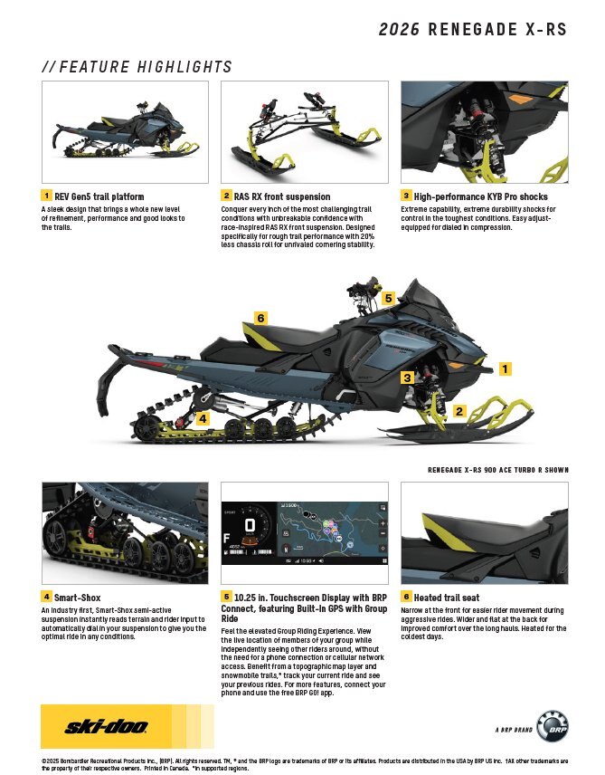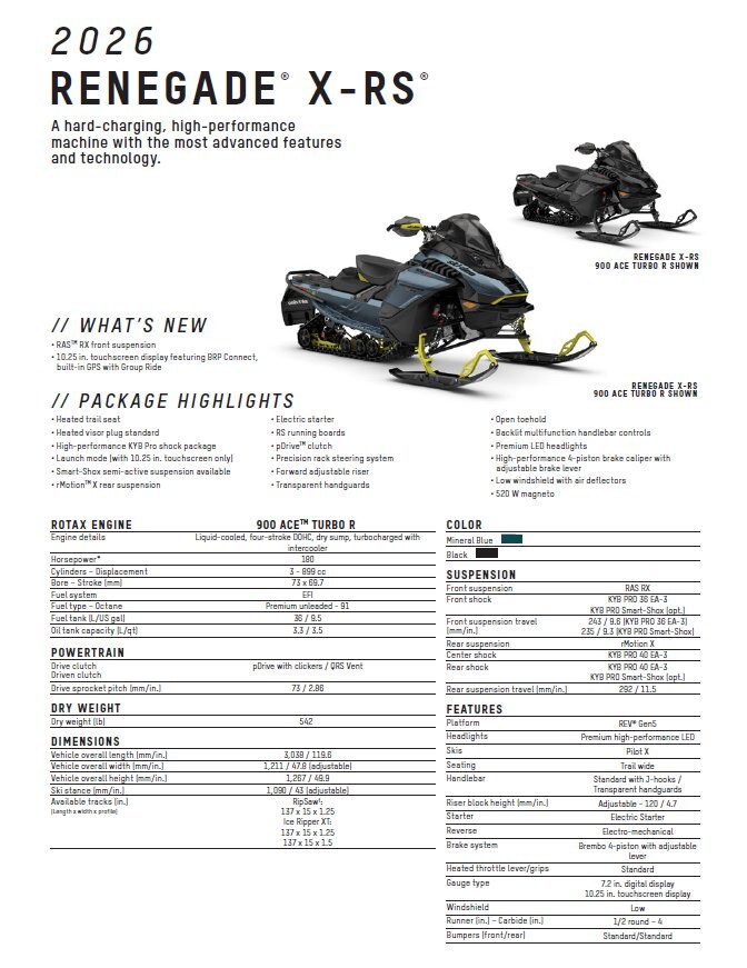 2026 Ski-Doo Renegade X-RS 900 ACE Turbo R RipSaw 1.25" E.S. w/ Smart-Shox w/ 10.25" Touchscreen
