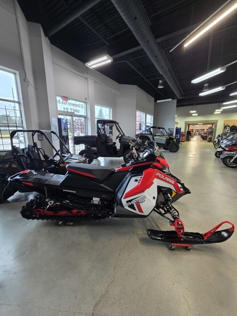 The INDY Adventure is equipped for those long days racking up the miles. The Sentry bumper, rear storage bag, and Insight mirrors come standard, with the 7S Display with Ride Command technology featuring vehicle to vehicle tracking, on board trail maps, and more.