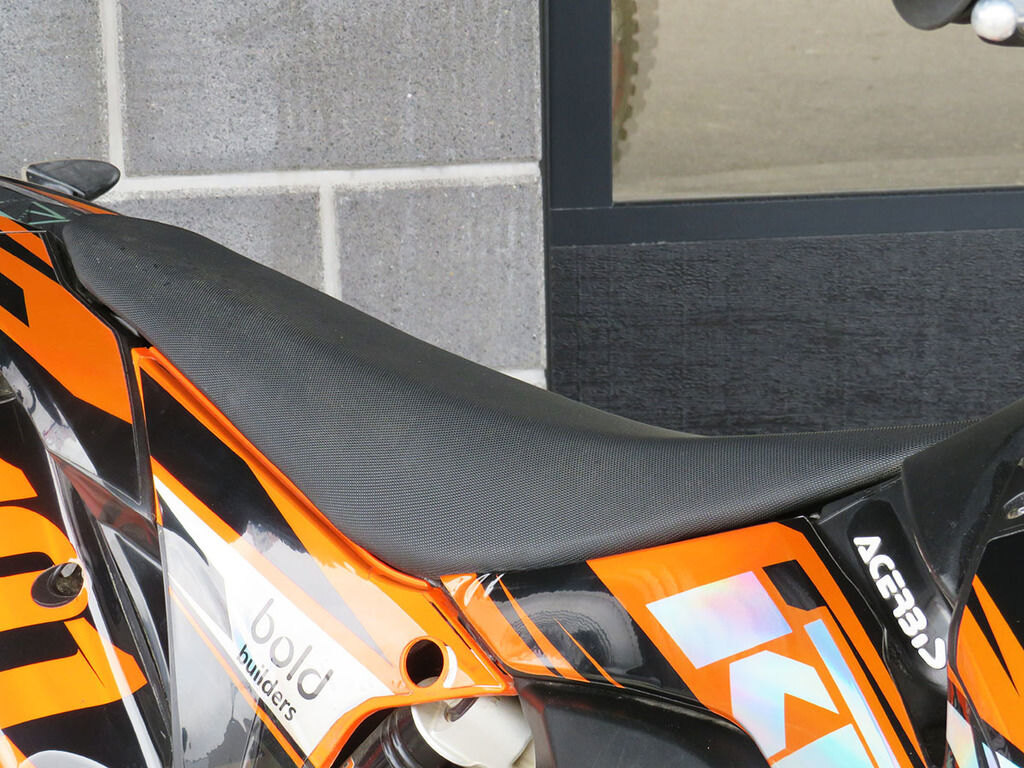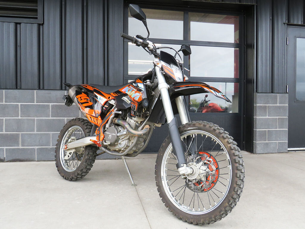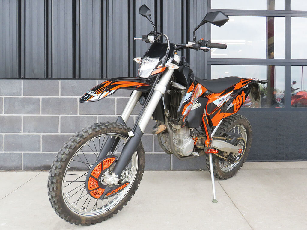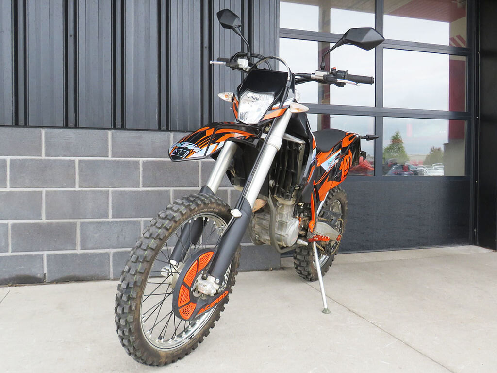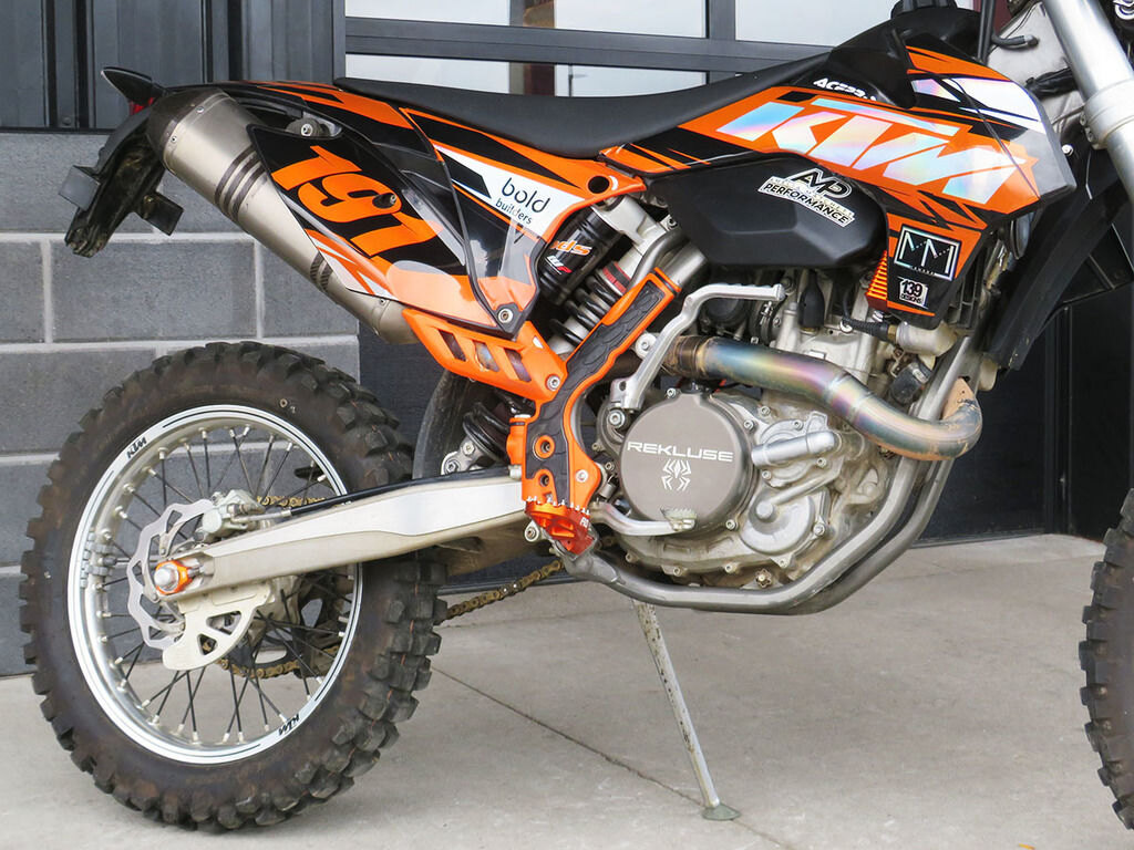 KTM's iconic street-legal enduro loaded with add-ons. Featuring a full Akrapovic exhaust, Rekluse clutch, Acerbis oversized fuel tank, frame guards, and front brake guard, a handlebar-mounted map switch that allows you to switch from stock / mild / or wild on the fly, Scotts steering damper, Voyager digital gauge, Flo Motorsports footpegs, a custom decal kit, and anodized accents all over!