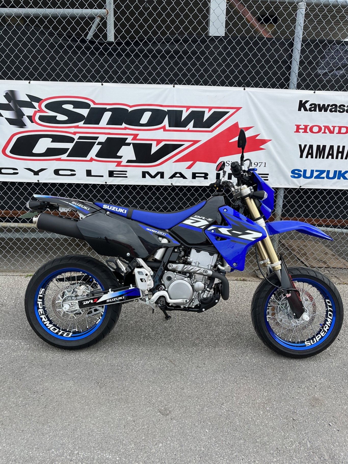 THE ESSENCE OF SUPERMOTARD RIDINGThe DR-Z400SM welcomes you to the exhilarating world of SuperMoto riding with cutting-edge dual-purpose bike design and stylish, functional top-grade equipment that captures the essence of free-spirited street riding pleasure. The Suzuki DR-Z400SM is a street-legal bike for serious dirt bike enthusiasts. It’s not uncommon to take the SuperMoto down twisty forest trails as well as tight canyon corners. Its 398cc liquid-cooled, four-stroke engine provides strong low-rpm torque and crisp throttle response for any of these occasions. The key difference between the DR-Z400SM and the DR-Z400S is the inverted forks. Inverted front forks contribute to less unsprung weight and improved overall handling. Fun to ride whatever street, avenue or highway you’re headed for. |