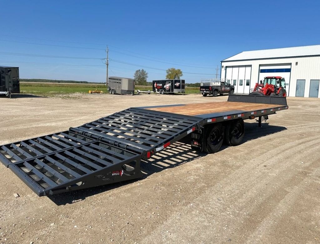 Precision Trailers\' Deck Over bumper pull series delivers durability and reliability. This trailers comes with Dexter torsion axles, From general farm use to hotshot or long haul trucking, the bumper pull series trailers are available in a wide range of models to match your range of loads. The bumper hitch makes for convenient hookups and easy pulling, either across the field or down the highway. These models let the transporter load and unload equipment or cargo from the side, without the need to worry about banging up fenders. Precision\'s Deck Over series come with heavy duty spring loaded Max Ramps. Our wiring is well-protected inside our tubing trailer frame. All models come with stake pockets with continuous rub rail and under deck tie down rails for added protection and load security.