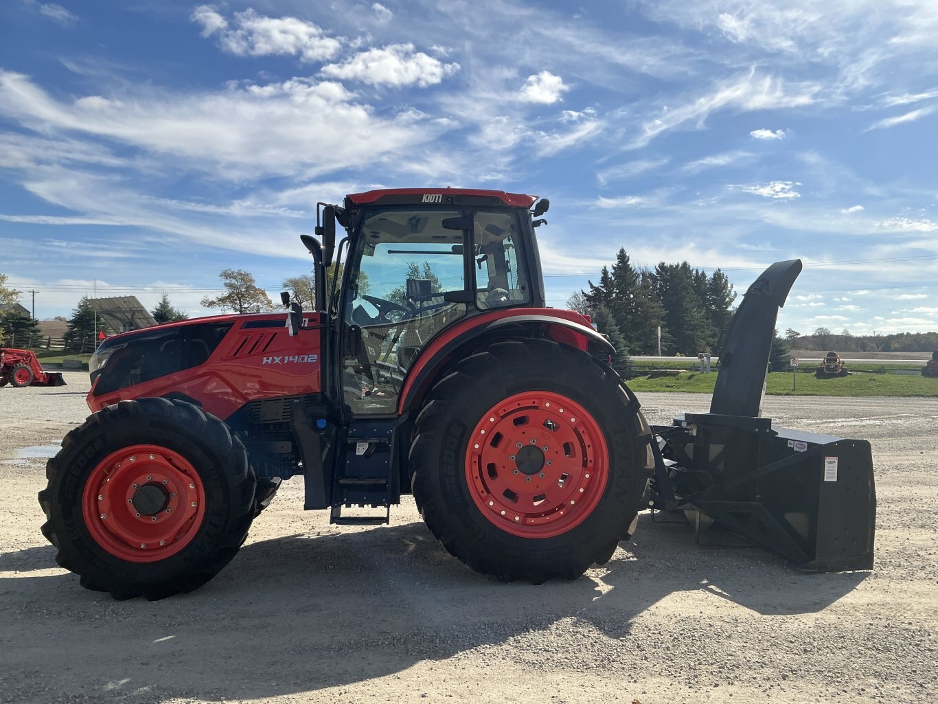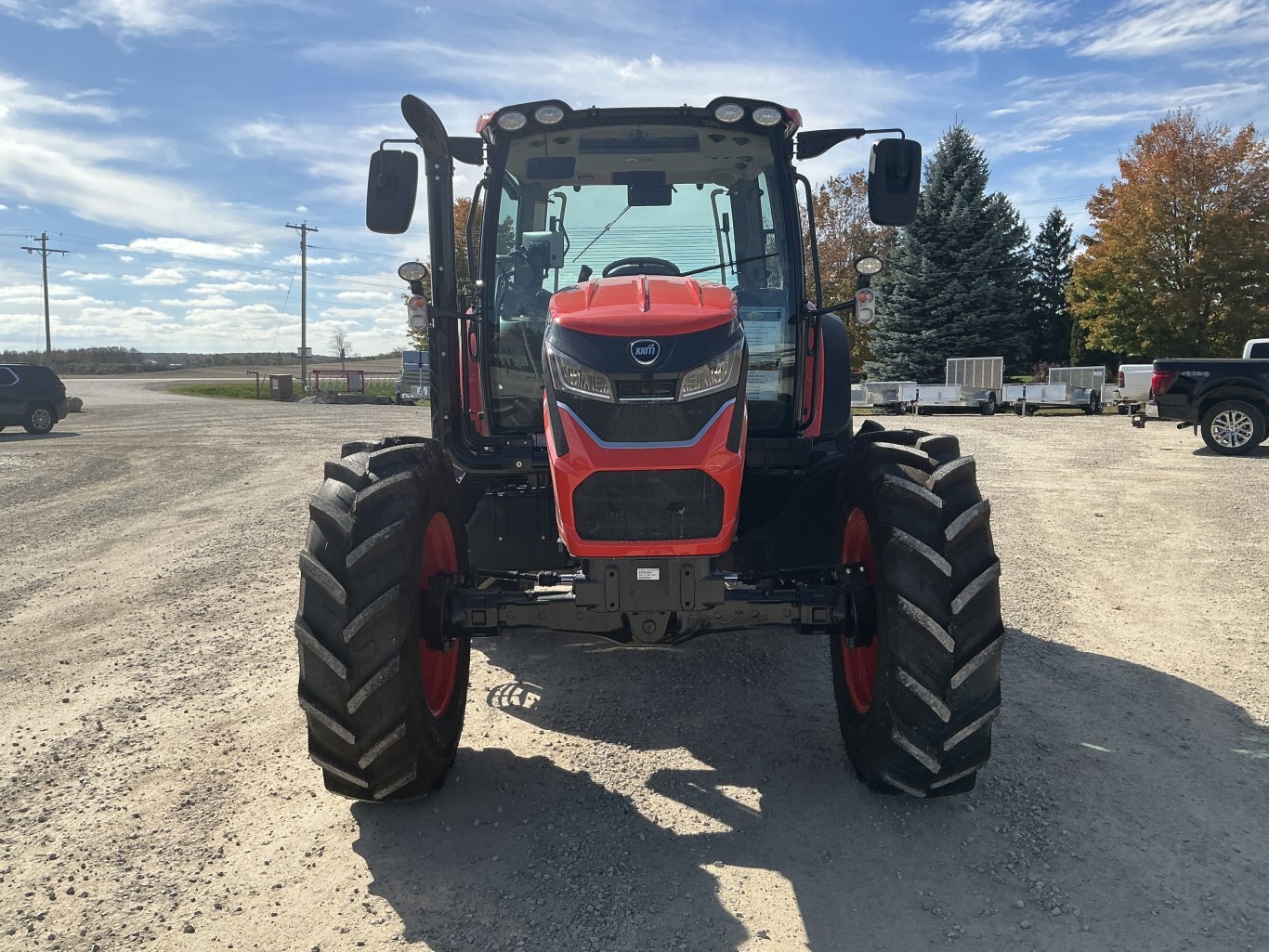New Kioti Hx1402 cab tractor. 140hp. Air ride seat and digital display. Hydraulic power shuttle. 3 Remote valves with flow control. Advanced 8 speed semi power shift transmission with creep. Diesel engine. LED lighting.