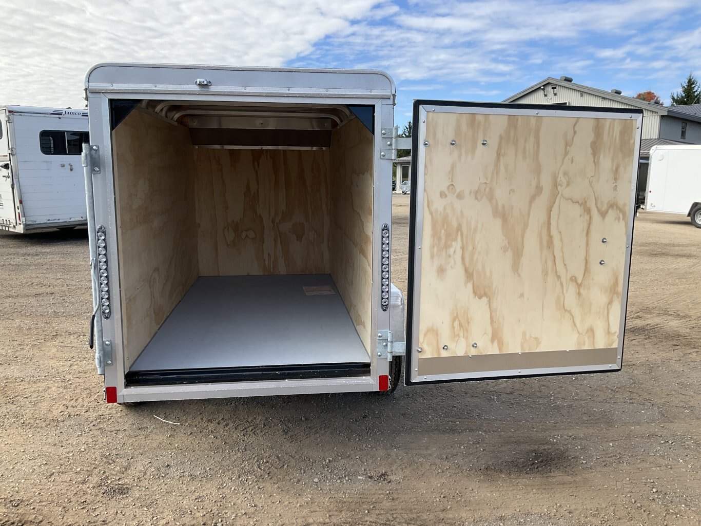 2000LB GVWR, Single Dexter Torflex Axle and EZ Lube Hubs with 5 Year Warranty, 13 Inch Radial Tires, Black Steel Wheels, .032 Inch Thick One Piece Seamless Aluminum with Lifetime Warranty, Aluminum Roof Bows, 3/4 Inch Exterior Grade Plywood Floor Painted on Both Sides with Lifetime Warranty, Channel Crossmembers, Rear Swing Door, Premium LED Exterior Lights with Lifetime Warranty, 3/8 Inch Plywood Walls, 3/4" Painted Plywood Floor, 16 Inch On Centre Wall Posts, .030 Inch Screwless Aluminum Side Skins, Aluminum Diamond Plate Stone Guard, Aluminum Diamond Plate Corners, Swivel Wheel Tongue Jack, Meets and Exceeds NATM Requirements