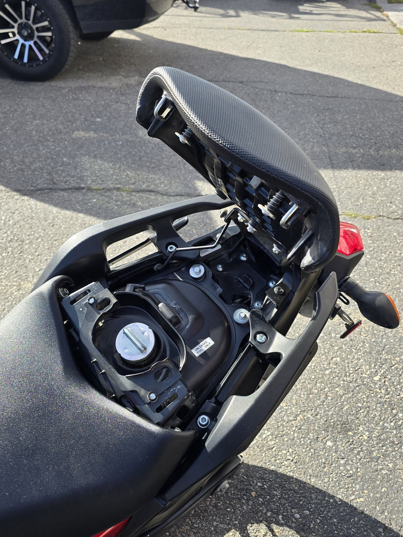 Services performed: All fluides changed, Both tires replaced, Chain and Sprockets replaced and even a new OEM rider seat added.