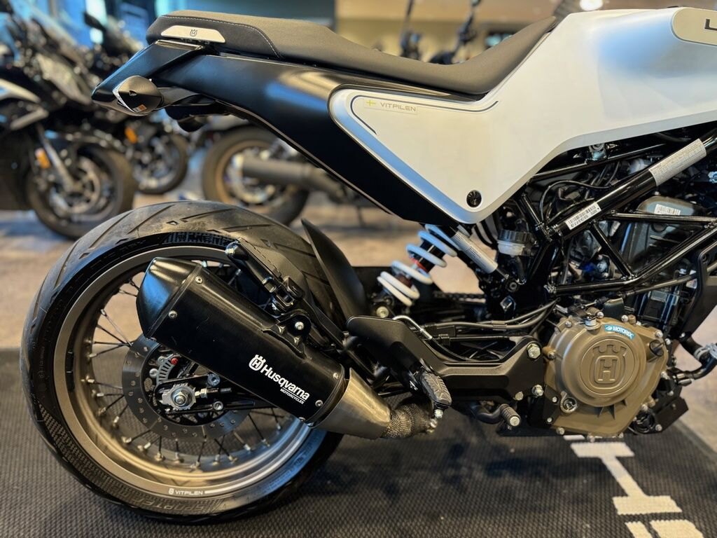The Vitpilen 401 is an unassuming hero of the sub-500 cc world. Its surefootedness, light weight and immersive riding position guarantee helmet-hidden smiles. You don\'t ride it as much as guide it with feather-light inputs. It reacts to the smallest response, moves at the lightest touch and feeds back every road texture through low-slung bars. It\'s an all-encompassing and sensory ride which resonates with new and experienced riders alike. The new 2022 colours and graphics enhance the stunning appearance, and reflect the progressive mix of modern thinking and classic design following the brands Swedish heritage.