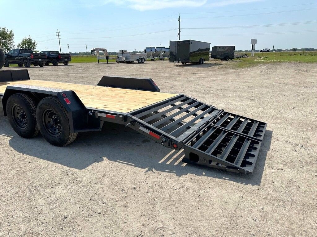 Precision Trailers' Heavy Duty Equipment bumper pull series comes with our hassle-free spring assisted mini beavertail flip down ramps. These trailers are built for Canada's extreme climate and to last in the toughest terrain, providing you with a high-quality tubular steel frame and 3” - 16” O/C high tensile i-beam cross members for increased strength and durability. The hitch tubing is doubled up for extra strength and a deeper a-frame toolbox. This trailer series, like all our trailers, uses Voltflex wiring harnesses that are fully sealed off inside the tubular frame. this trailer has Dexter's more durable Torsion Axles, Carlisle wheels and radial tires are selected for each model. This trailer is a must for any construction worker.