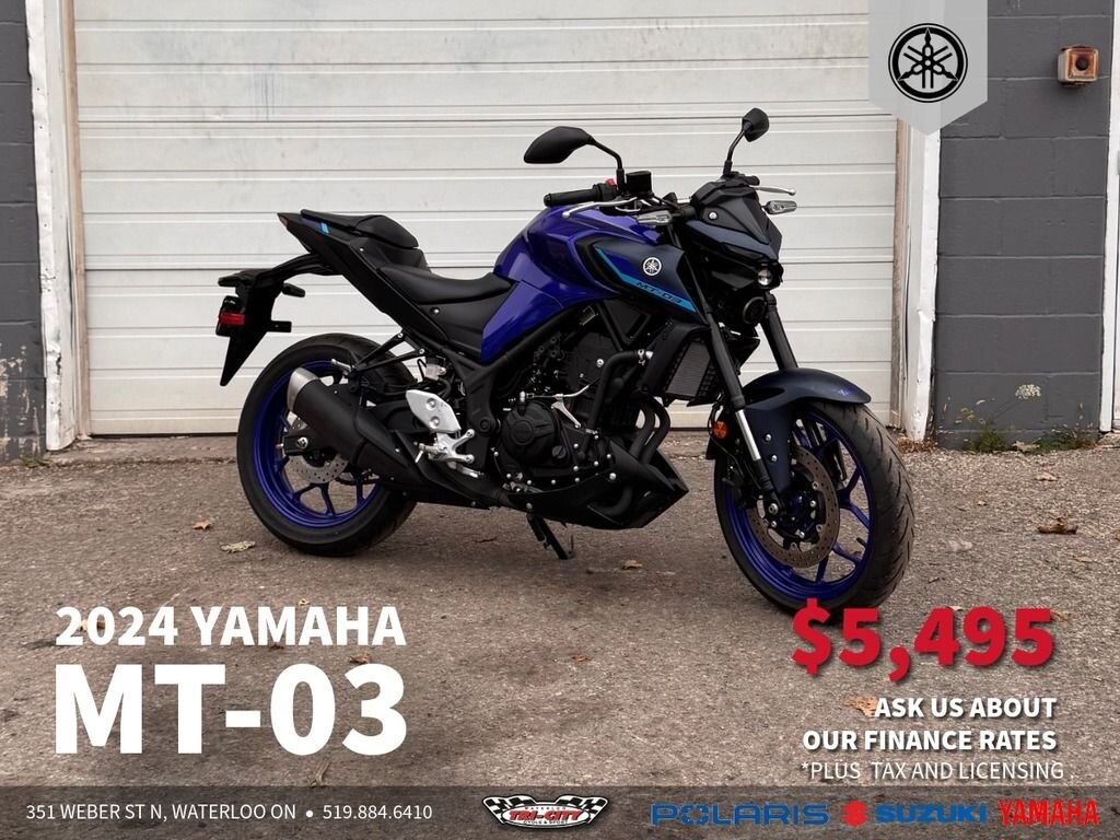 With its sophisticated engine, lightweight handling and naked styling, the Yamaha MT-03 brings the signature MT family design to the small-displacement category. Featuring a radical new look and feel, a best-in-class two-cylinder engine and state-of-the-art suspension for precise handling and outstanding agility, the new MT-03 is the ultimate entry-level ride for anyone looking to join the MT family.