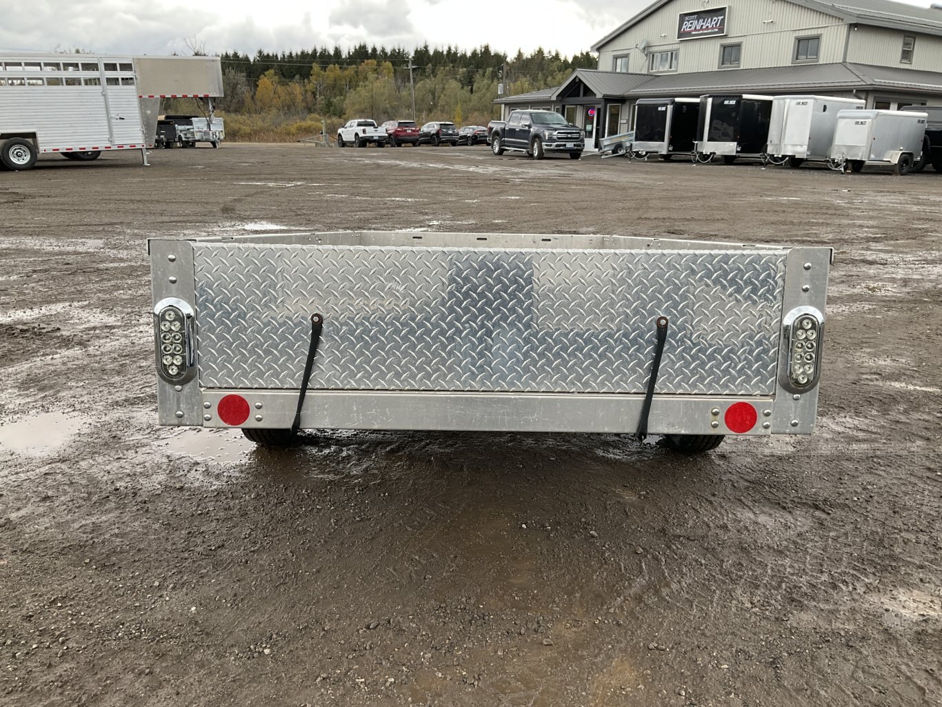 2200LB Torflex Axle, 13" Tires, Galvanized Rims, Tilting Aluminum Box, 13" Solid Sides, ATP Drop in Tail Gate, Stake Pockets and Tie Downs, LED Rubber Mount Lighting, All Aluminum Construction