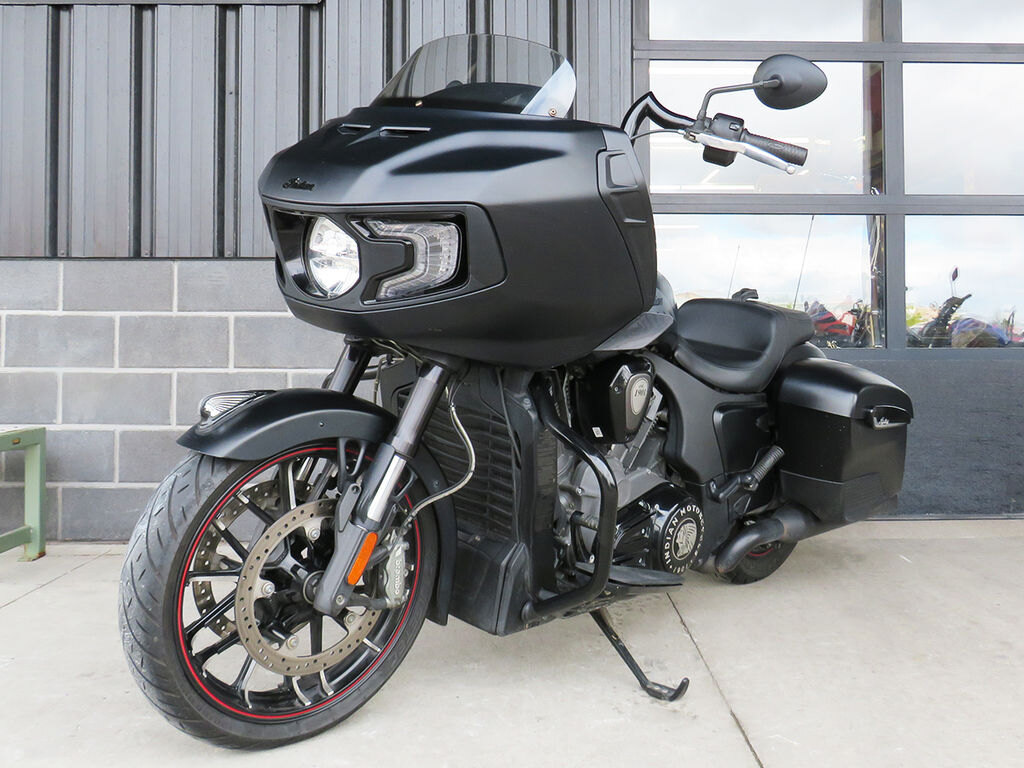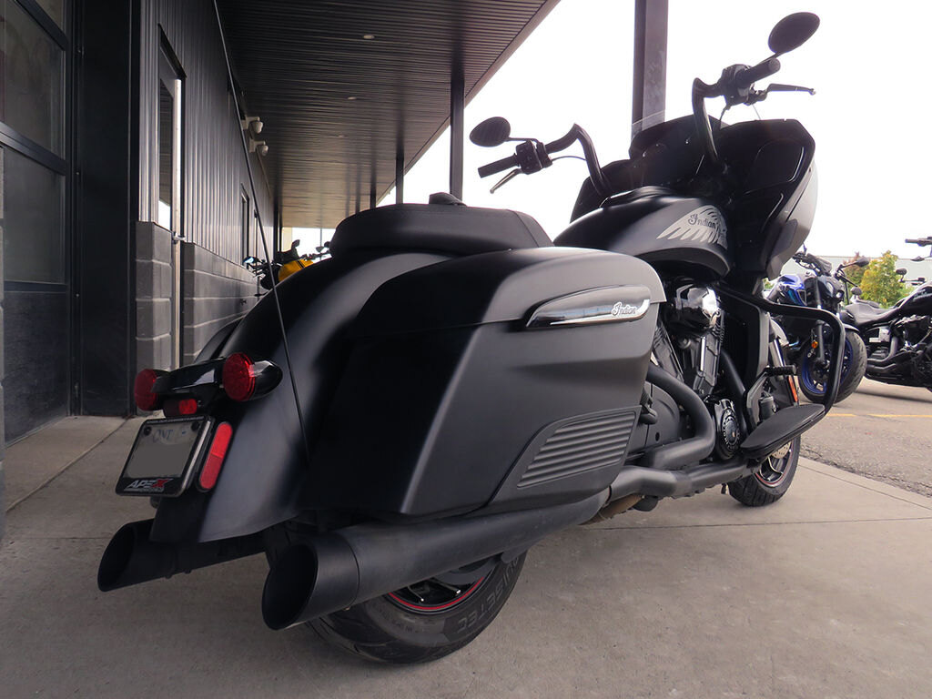 BLACK ON BLACK ON BLACKThe Indian Challenger Dark Horse has unbridled power and a style that never bows down. Premium features, and an aggressive, blacked-out silhouette, ensure heads turn wherever it roams.