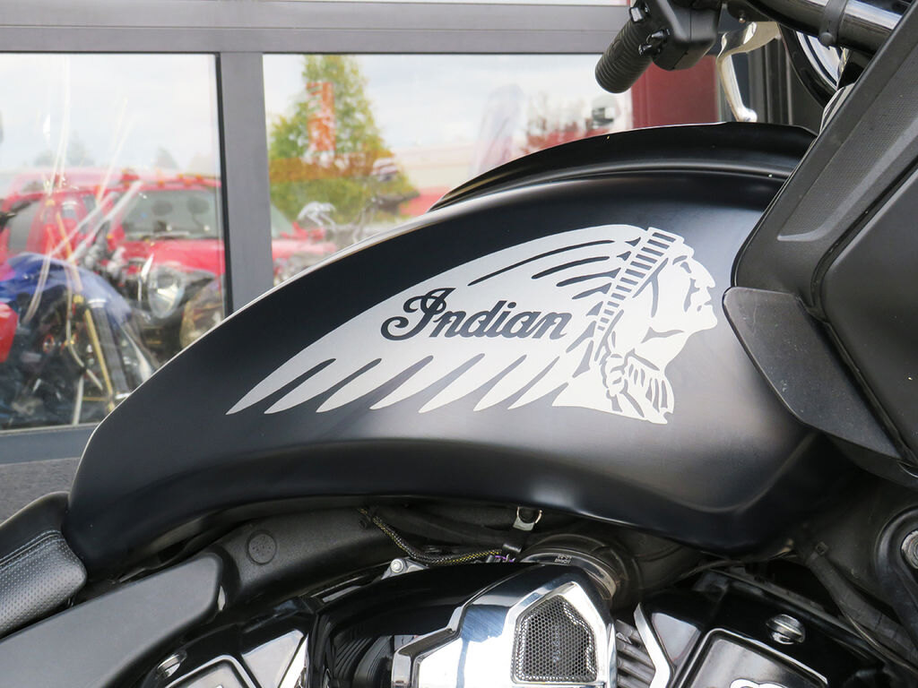 Open fender with subtle flip and a modern take on the iconic lit headdress means no mistaking that Indian Challenger has arrived.