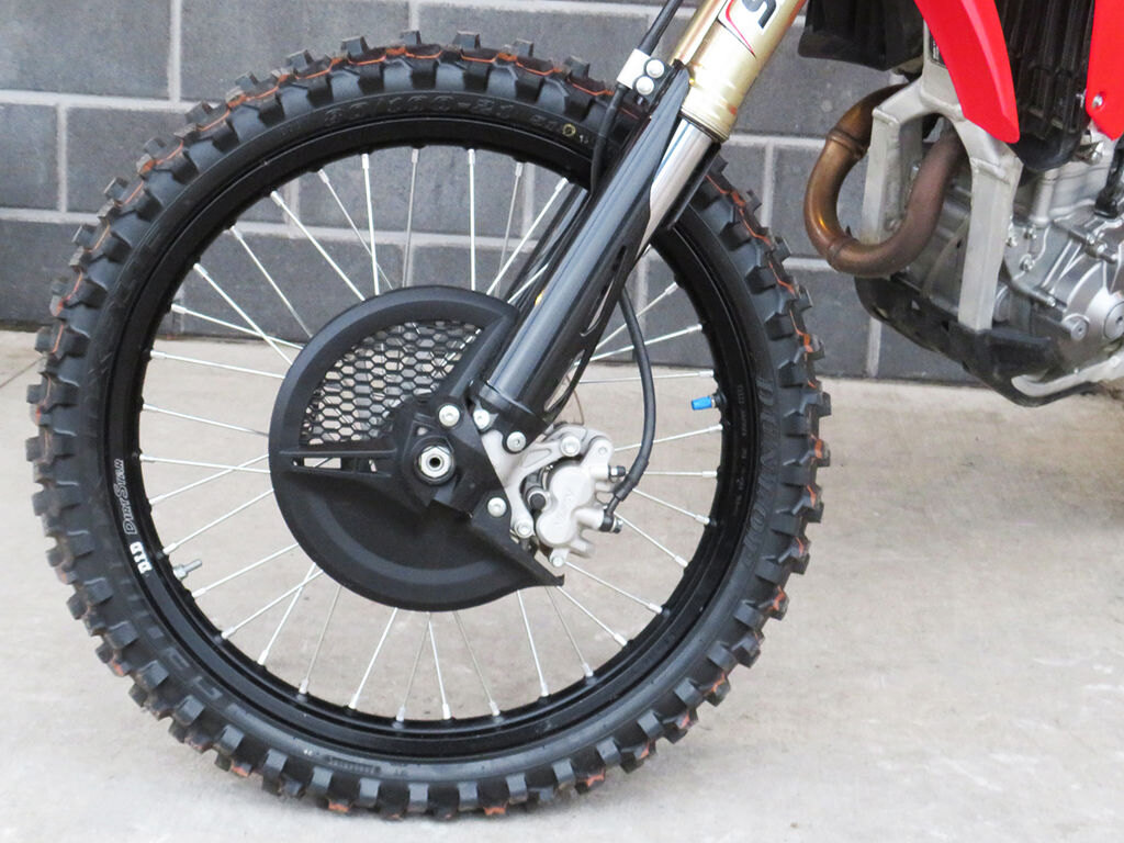 Developed using the latest Dunlop block-on-block design technology, the CRF250Rs MX3S tires give excellent feedback and are a perfect complement to the bikes improved frame and suspension.