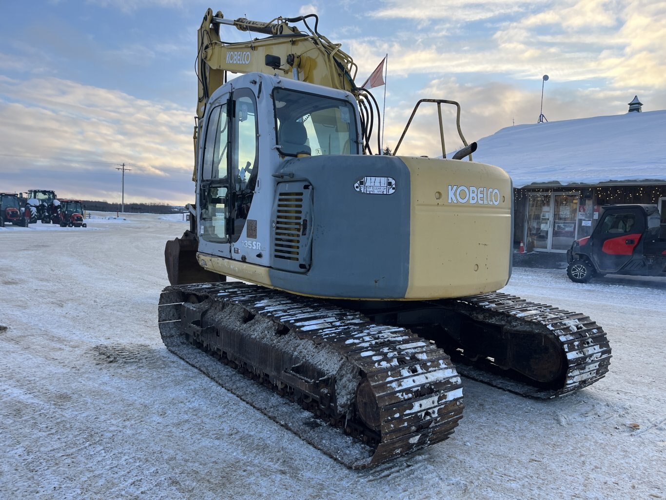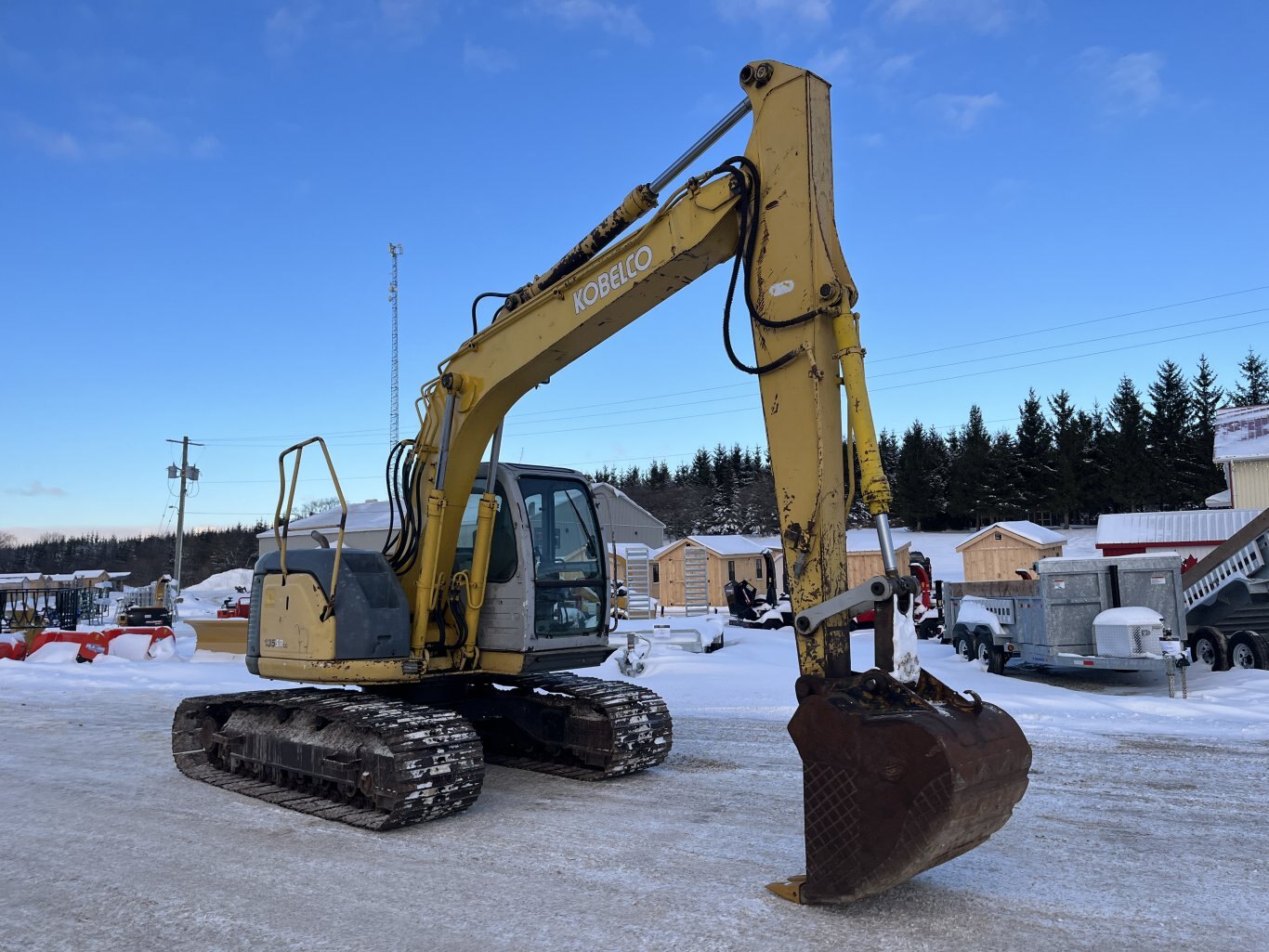 1999 Kobelco sk135SRLC is powered by a 80hp Isuzu diesel engine. Two speed driveline.  Enclosed heated cab . Unit weights about 31000lbs. Hour meter reads 7153.