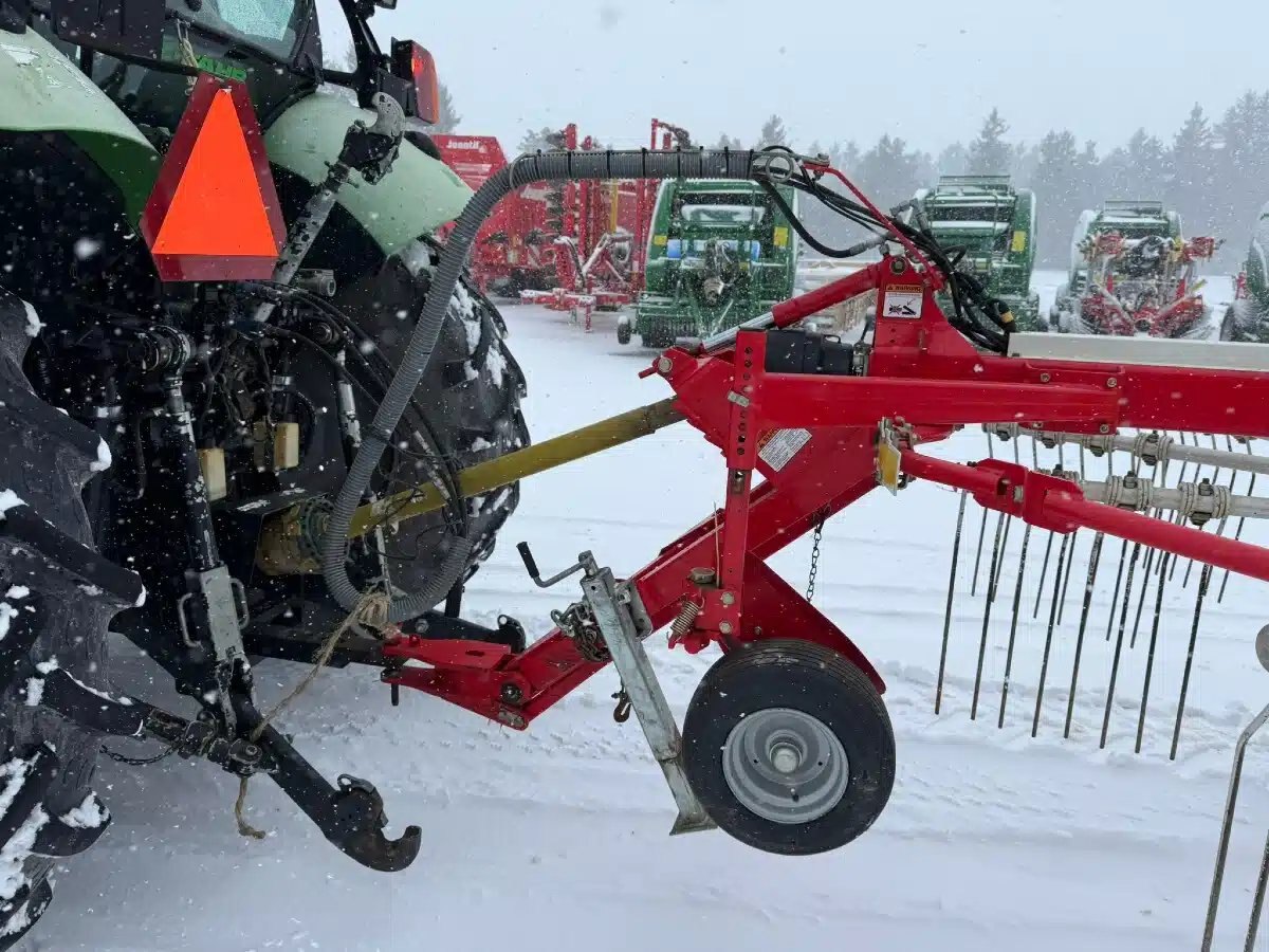 twin rotor rake, tandem axle, drawbar hitch,req 2 remotes, front and rear curtain, 540 pto