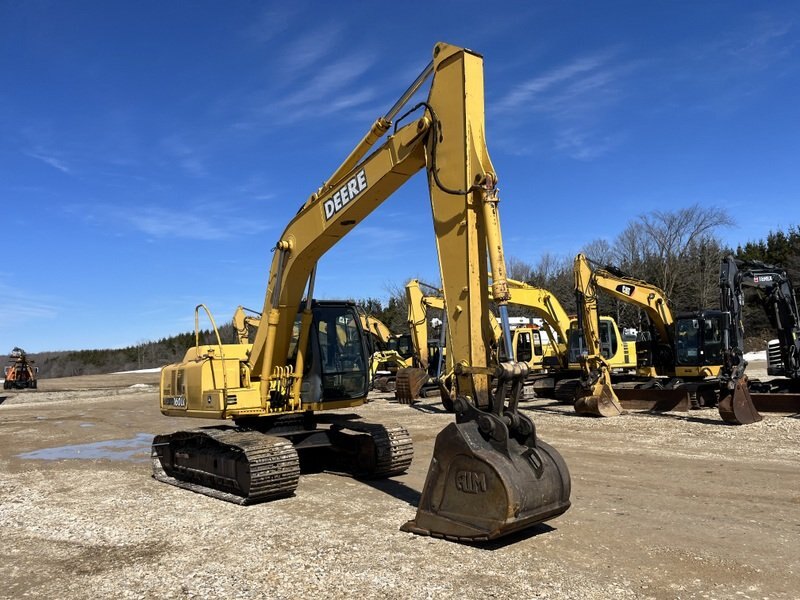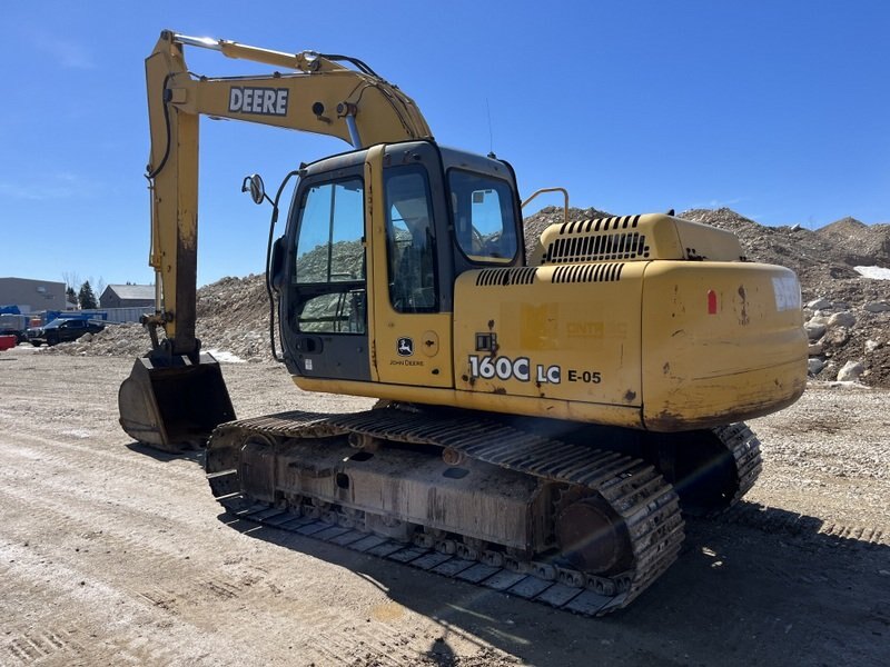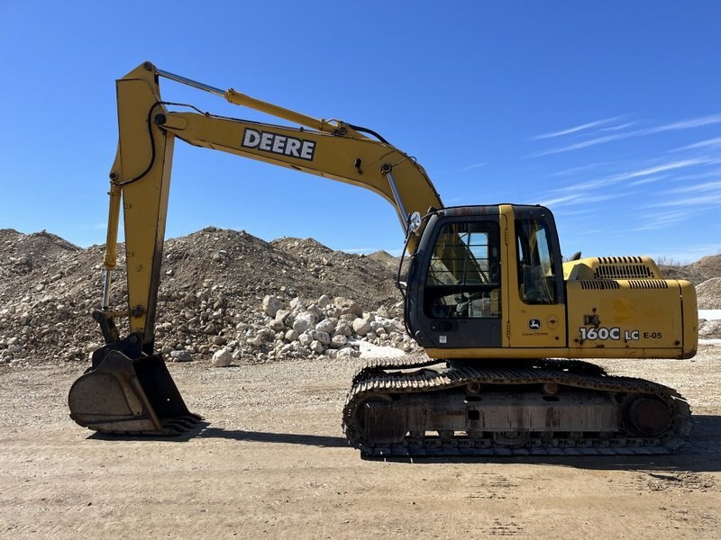 2003 John Deere 160LC is powered by a 109hp John Deere diesel engine. Machine weighs about 36,000lbs. Enclosed cab heated with all glass intact. Hour meter reads 13818.