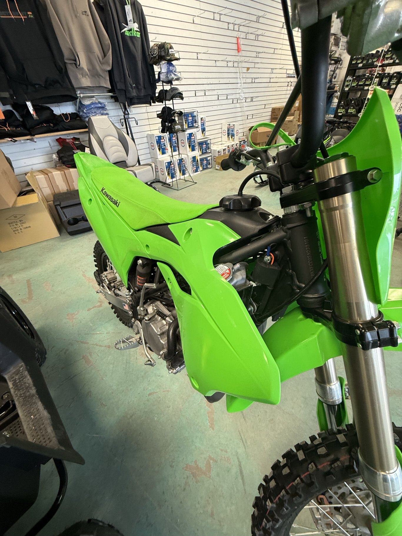 | The KX85 motorcycle brings Kawasaki’s proven performance to the amateur ranks. Proportionate power of the 84cc engine and race-ready technology grant young racers the championship-winning advantage they need to sharpen their skills. |